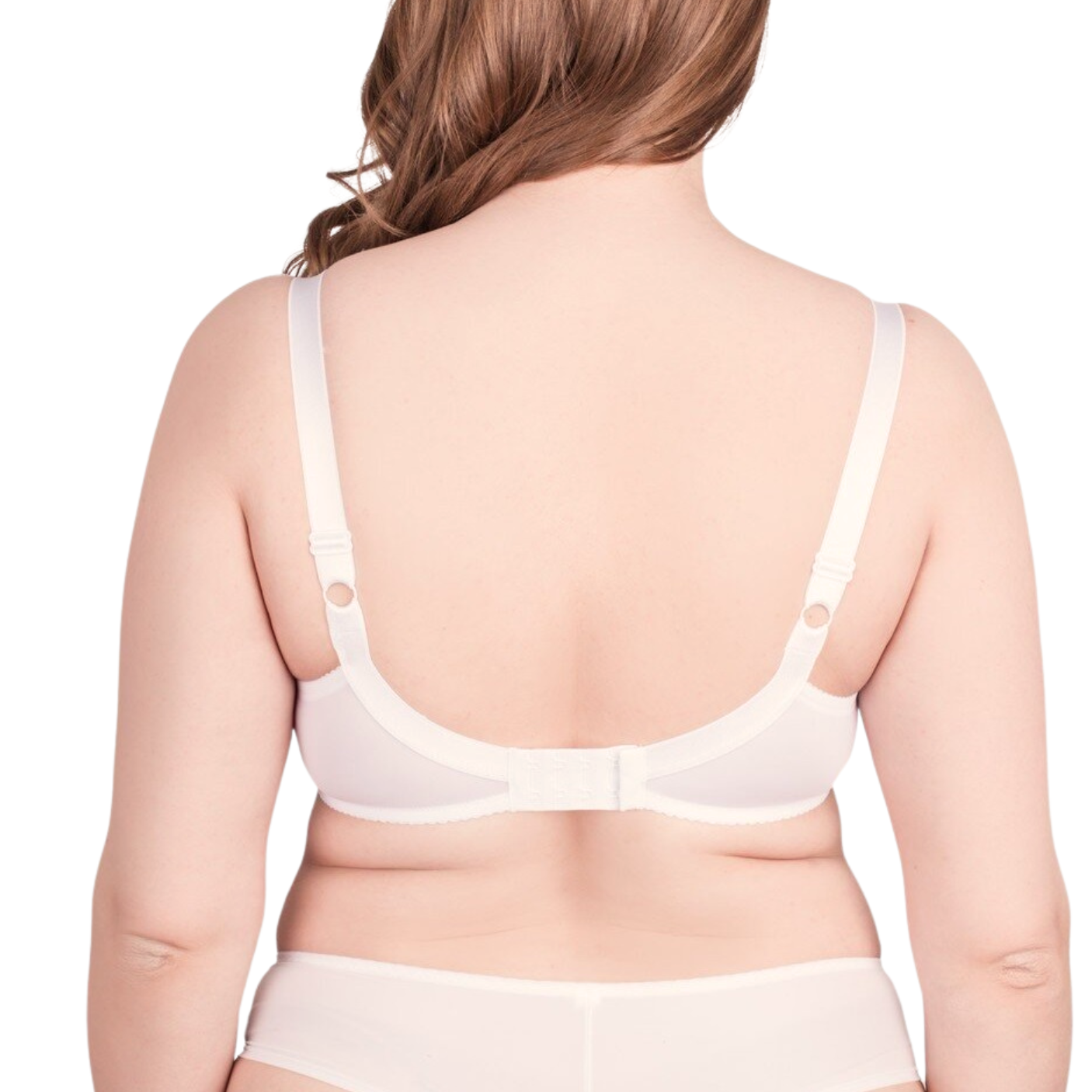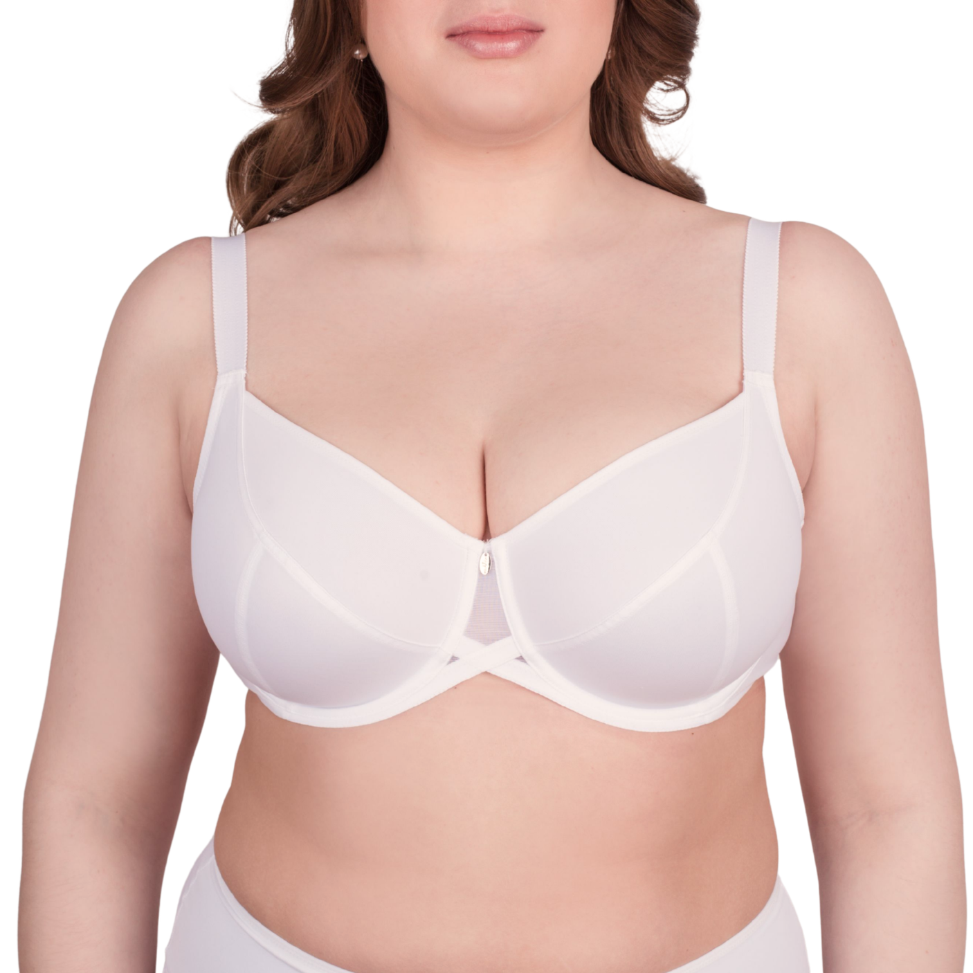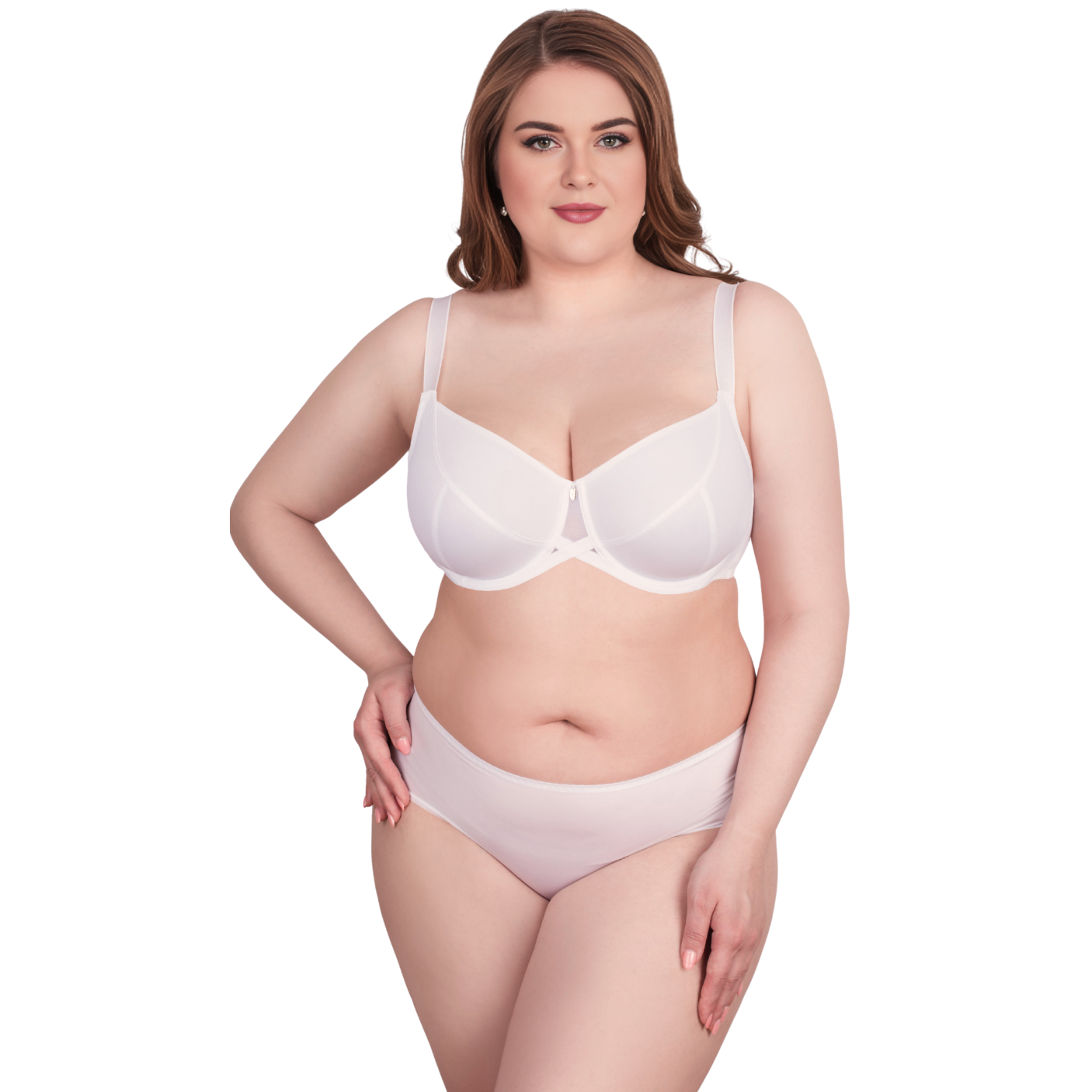 Мягкий бюстгальтер Милавица выполненный из эластичного полотна - комфортное нижнее белье для обладательниц больших форм. Эргономичные каркасы, широкие бретели и маечный крой спинки снимут нагрузку с шеи и позвоночника. Тройное диагональное членение чашки позволяет собрать грудь к центру. Линия шва эффектно переходит  в декор центральтной ластовицы, образуя эффект шнуровки. Центральная часть бюстгальтера украшена фирменной подвеской бренда Милавица.  Универсальное и красивое нижнее белье для обладательниц больших форм.