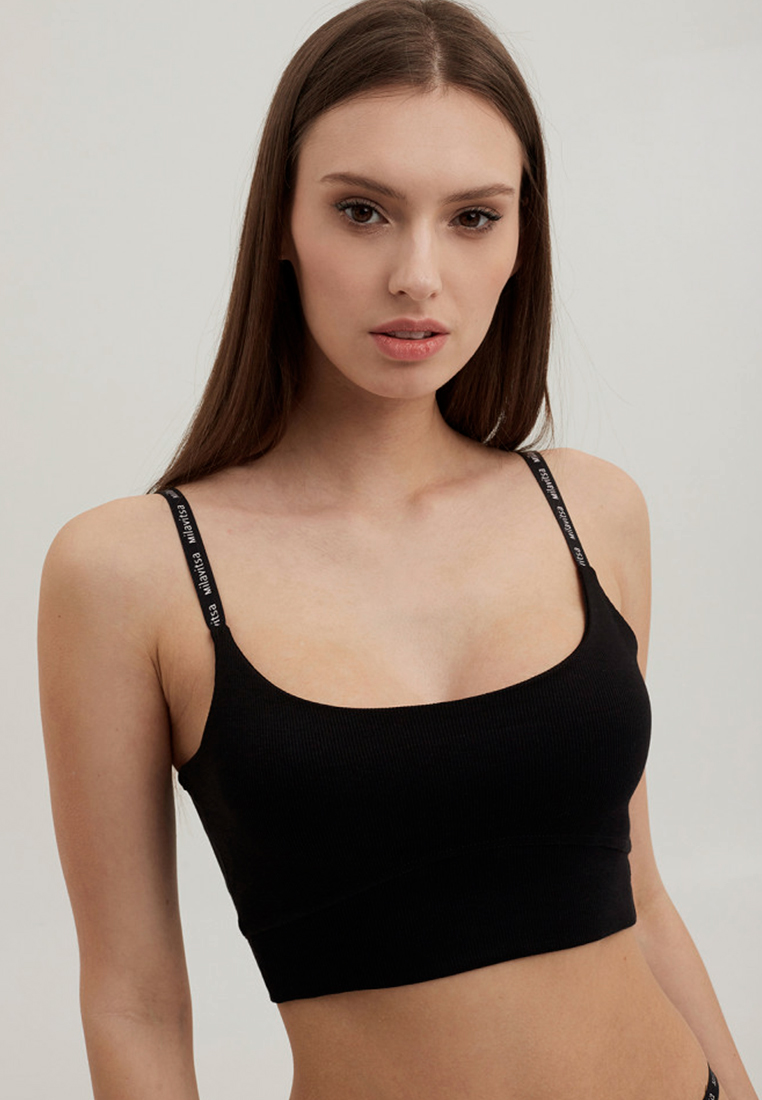 Украшение топа - декоративная тесьма с логотипом «Milavitsa», которая добавляет моделям необычный акцент.